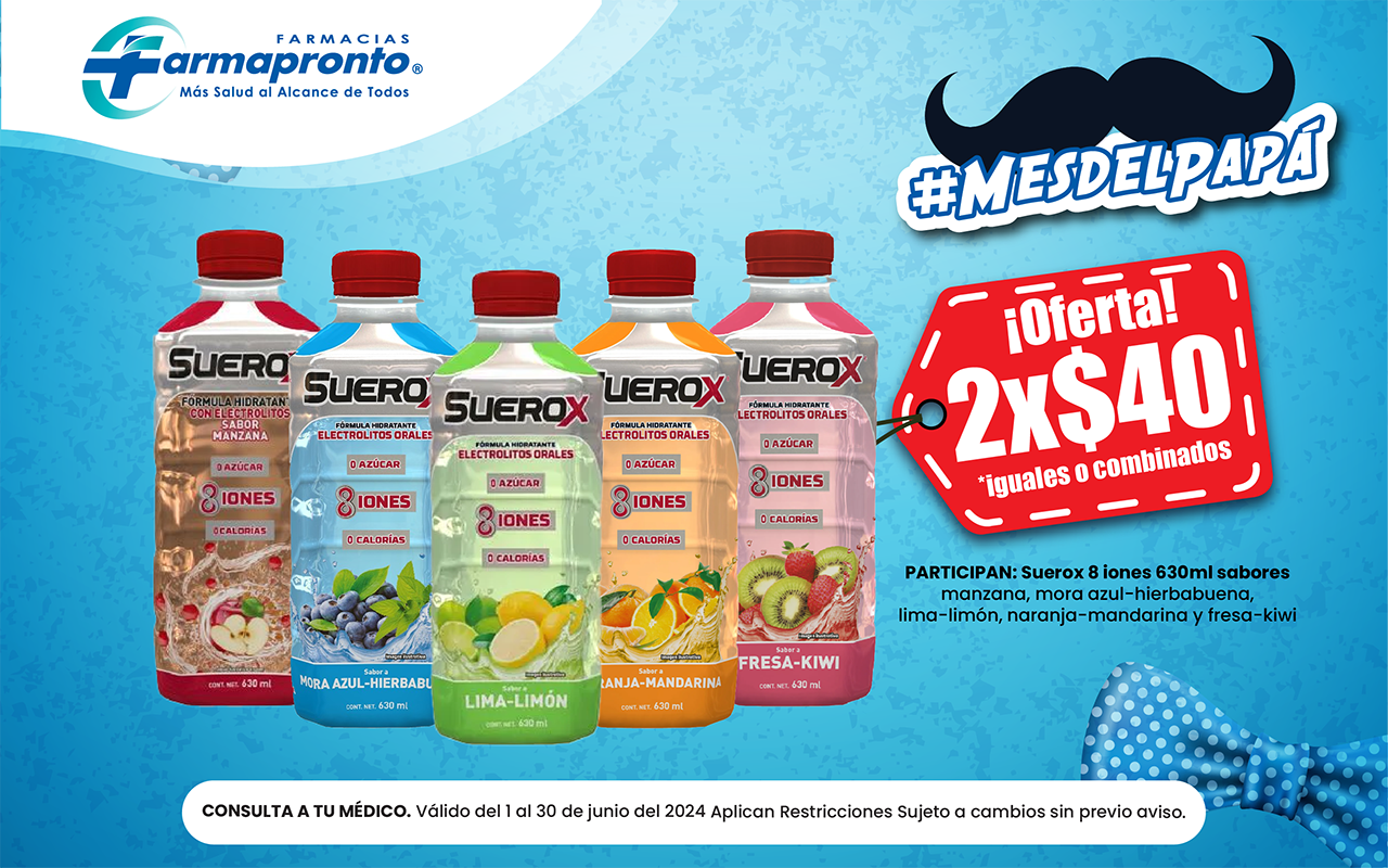 Suerox está disponible en una variedad de sabores agradables, lo que lo hace más atractivo y fácil de consumir, especialmente para aquellos que tienen dificultad para beber suficientes líquidos.